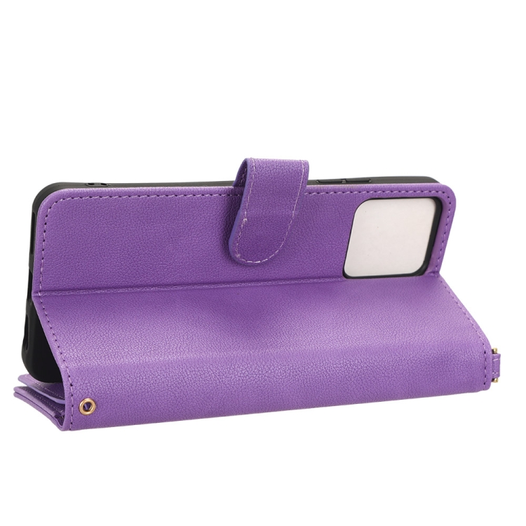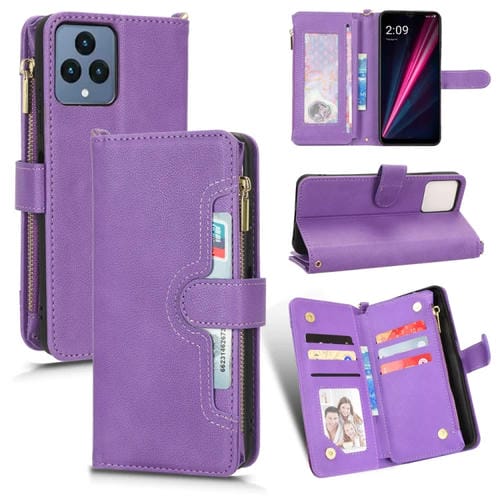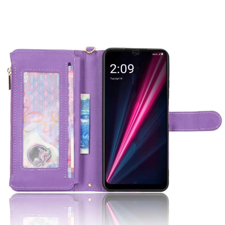 Funda de Cuero para T-Mobile Revvl 6 5G con Cremallera y Textura Litchi (Púrpura)