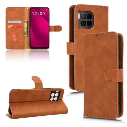 Funda para T-Mobile Revvl 7 Pro 5G de Cuero con Tapa Magnética (Marrón)