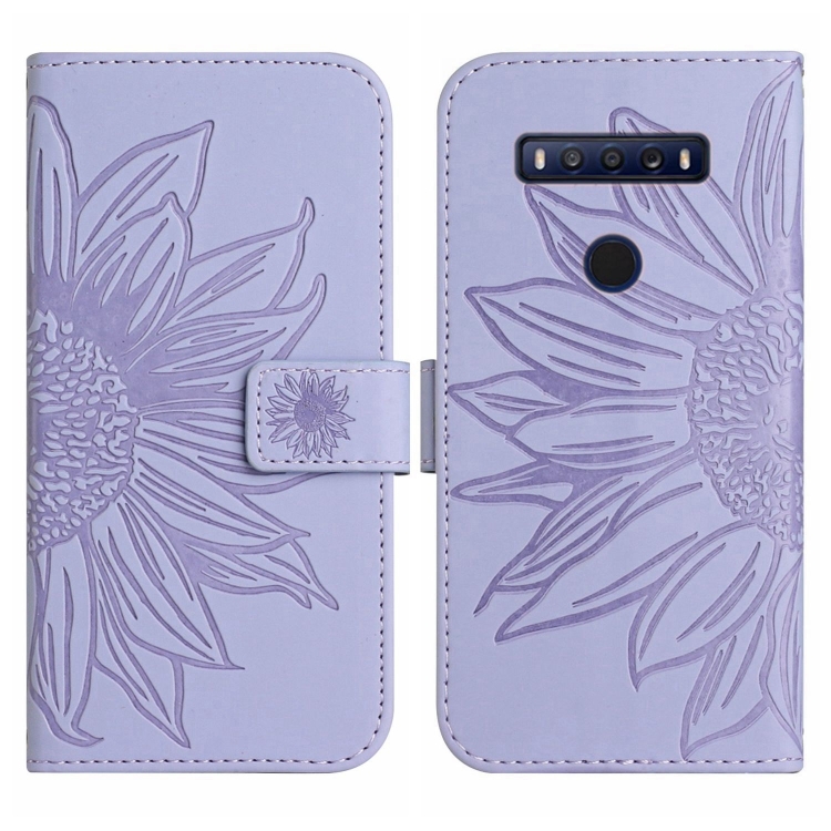 Funda Flip de Cuero para TCL 10 Se Skin Feel con Cordón y Diseño Sun Flower (Púrpura)