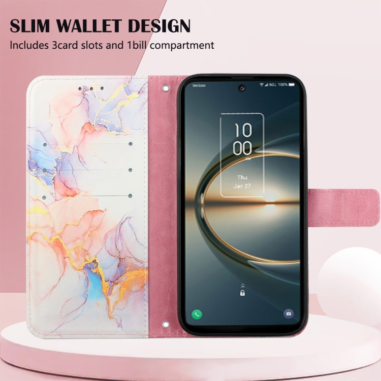 Funda con Tapa de Cuero para Tcl 30 V 5G T781S/30 Xe 5G Pt003 Diseño Mármol (Blanco)