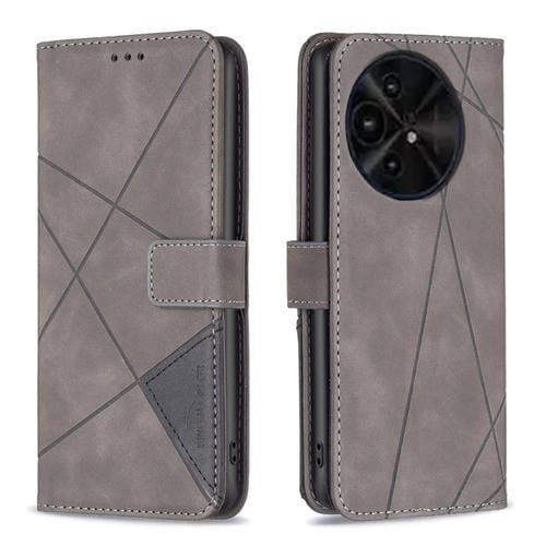 Funda de Cuero para TCL 50 Xe y 50 Xl 5G con Textura de Rombo y Hebilla Magnética (Gris)