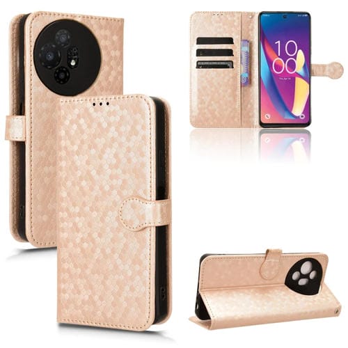 Funda de Cuero para TCL 50 XL 5G con Textura de Punto de Panal (Dorado)