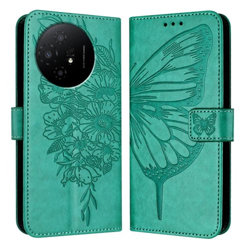 Funda de Cuero para TCL 50 XL 5G con Mariposa en Relieve (Verde)