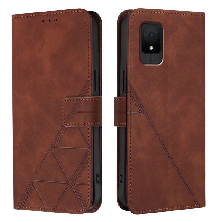Funda para TCL 502 Crossbody de Cuero con Tapa en Relieve 3D (Marrón)