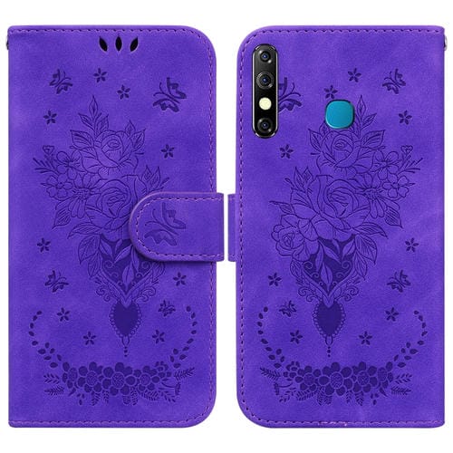 Funda de Cuero para Tecno Camon 12 y Spark 4 con Relieve de Mariposa (Púrpura)