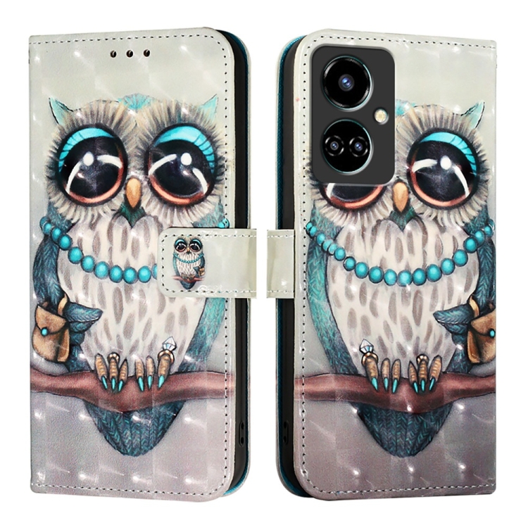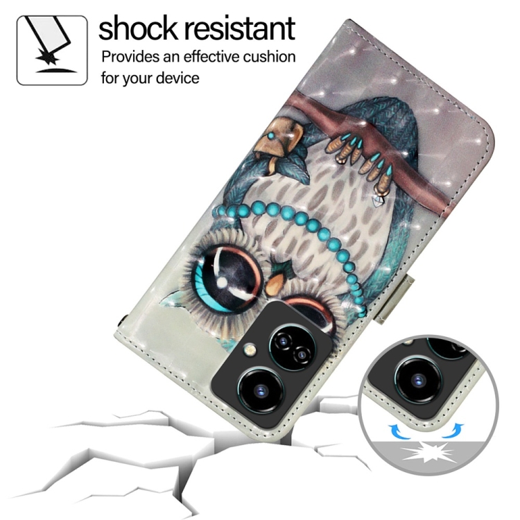 Funda de Cuero para Tecno Camon 19 con Tapa Horizontal y Pintura 3D (Búho Gris)