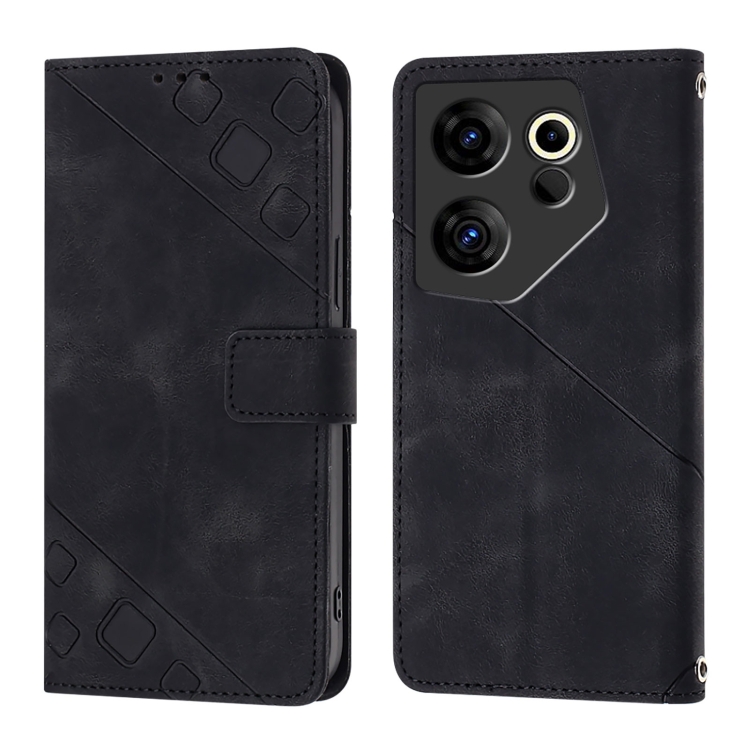Funda de Cuero para Tecno Camon 20 Premier 5G Skin Feel en Relieve (Negro)
