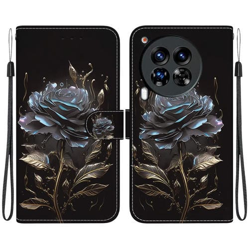 Funda de Cuero para Tecno Camon 30 Premier 5G con Dibujo Coloreado y Textura de Cristal (Rosa Negra)