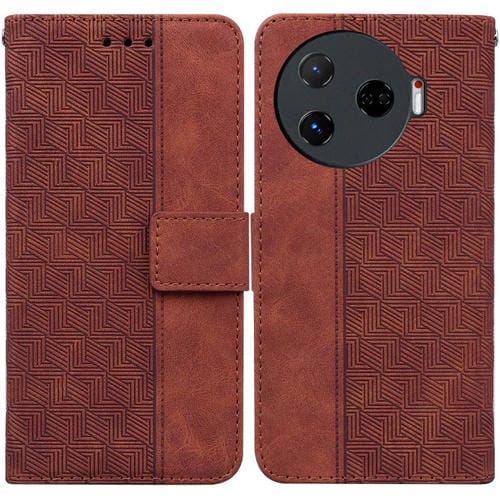 Funda de Cuero para Tecno Camon 30 Pro Cl8 con Relieve Geométrico (Marrón)