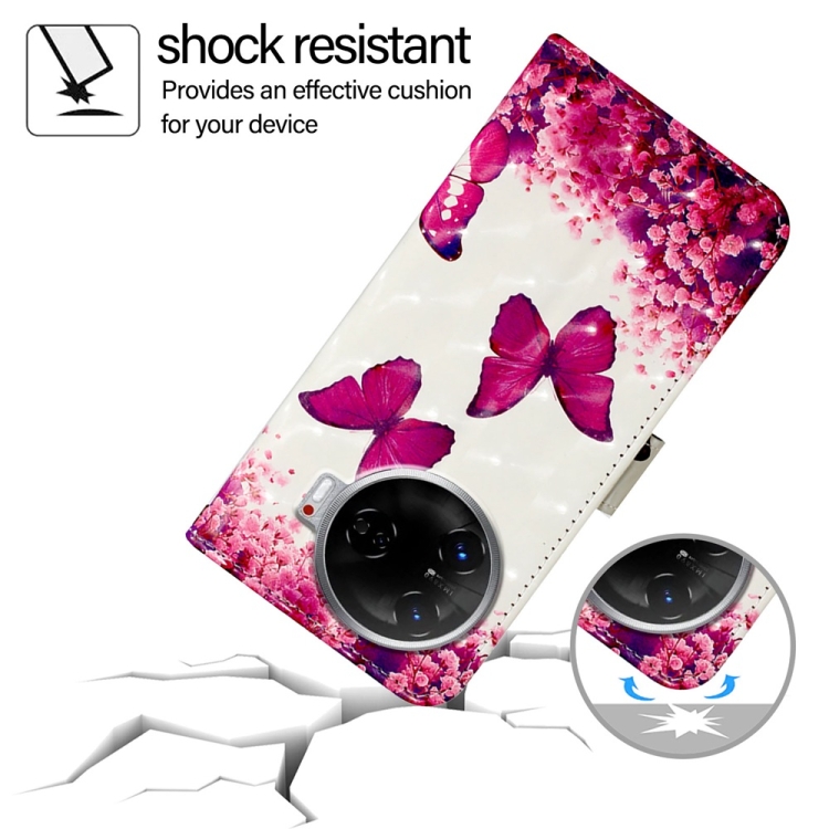 Funda de Cuero para Tecno Camon 30 Pro con Tapa Horizontal y Pintura 3D (Mariposa Rosa)