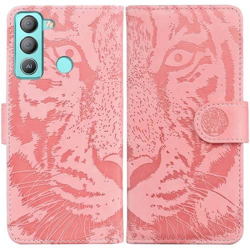 Funda Flip de Cuero para Tecno Pop 5 Lte Bd4 con Estampado en Relieve Horizontal (Rosa)
