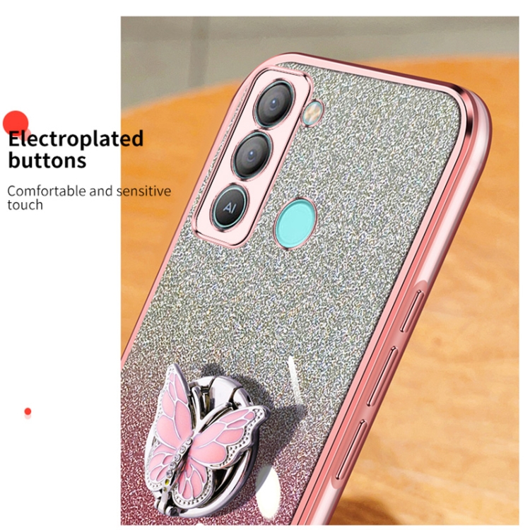 Funda para Tecno Pop 5 Lte TPU con Soporte Mariposa y Brillo Degradado (Rosa)