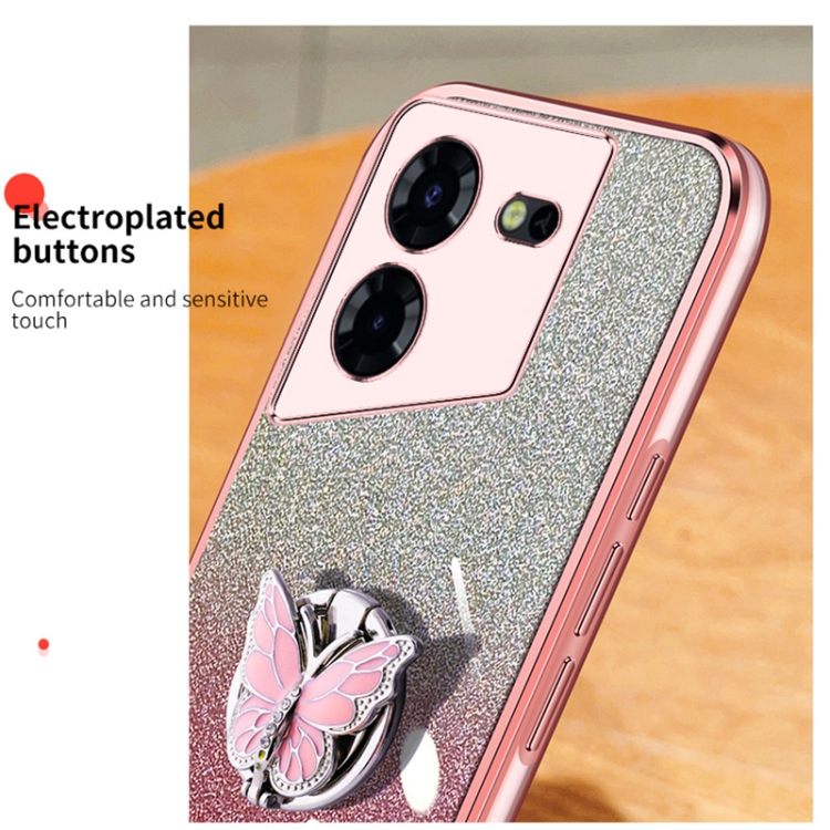 Funda para Tecno Pop 5 Pro de TPU con Soporte de Mariposa y Brillo Degradado (Azul Sierra)