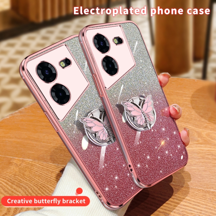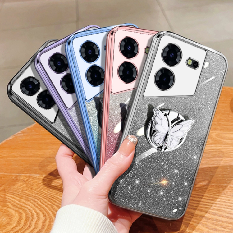 Funda para Tecno Pop 5 Pro TPU con Soporte de Mariposa y Brillo Degradado (Púrpura)