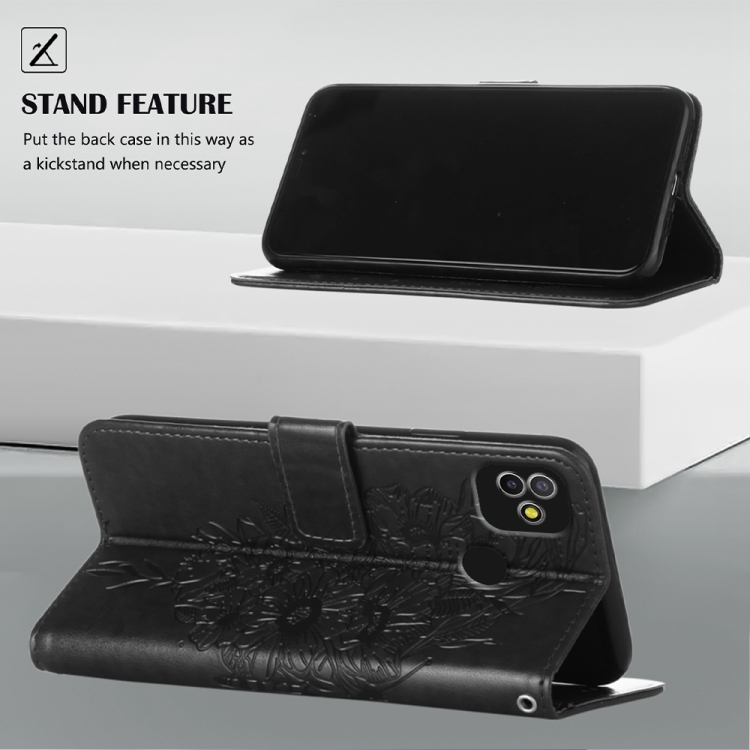 Funda de Cuero para Tecno Pop 5 con Mariposa en Relieve (Negro)