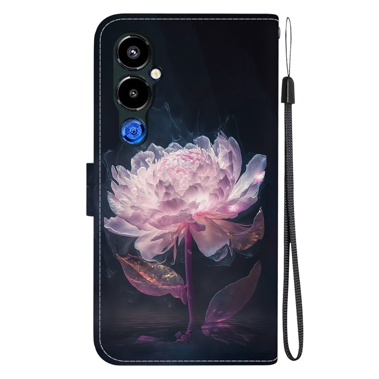 Funda de Cuero para Tecno Pova 4 Pro con Dibujo Coloreado y Textura de Cristal (Peonía Púrpura)