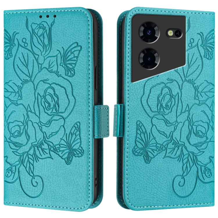 Funda para Tecno Pova 5 Pro 5G de Cuero Antirrobo RFID con Relieve (Azul Claro)