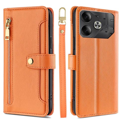Funda de Cuero para Tecno Pova 6 5G con Billetera y Cremallera (Naranja)
