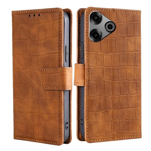 Funda para Tecno Pova 6 Pro 5G de Cuero con Cierre Magnético y Piel de Cocodrilo (Marrón)