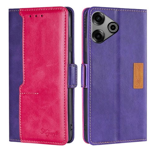 Funda para Tecno Pova 6 Pro 5G de Cuero con Hebilla Lateral (Púrpura + Rojo Rosa)