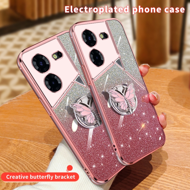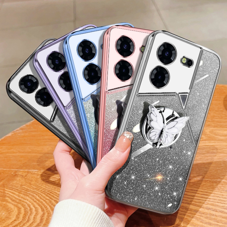 Funda para Tecno Pova 6 Pro de TPU con Soporte de Mariposa y Brillo Degradado (Plata)