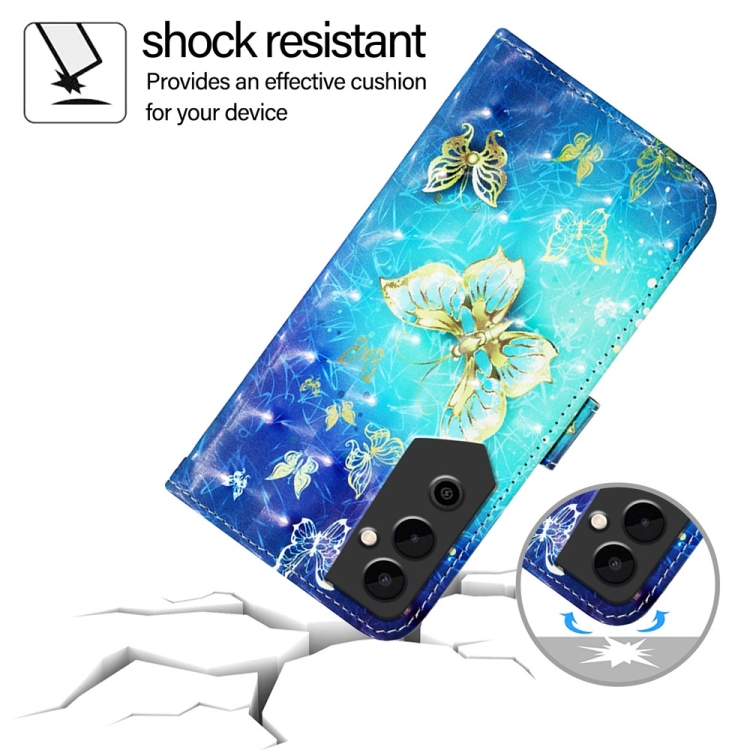 Funda para Tecno Pova Neo 2 de Cuero con Tapa Horizontal y Pintura 3D (Mariposa Dorada)