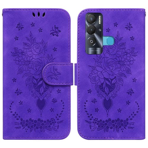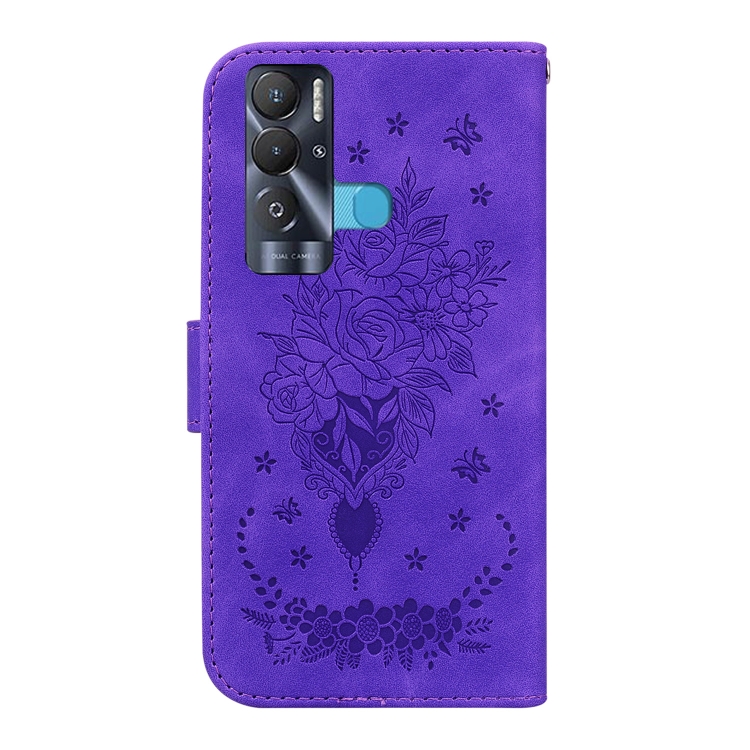 Funda para Tecno Pova Neo Butterfly Rose Foothip en Relieve de Cuero (Púrpura)
