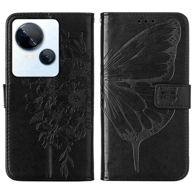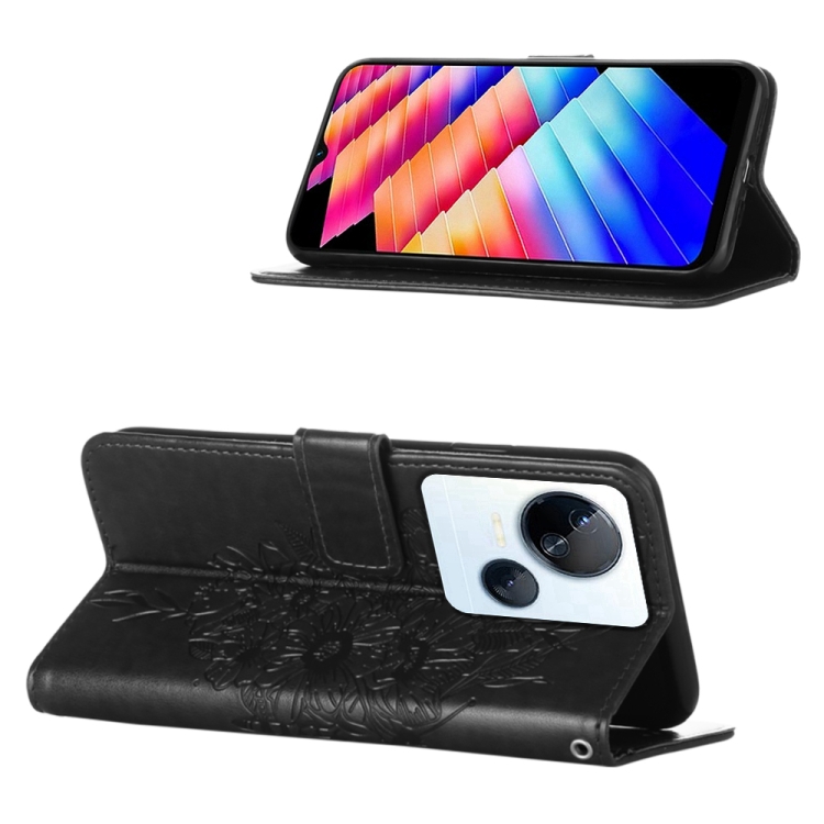 Estuche para Teléfono Tecno Spark 10 5G K18 Cuero con Mariposa En Relieve (Negro)