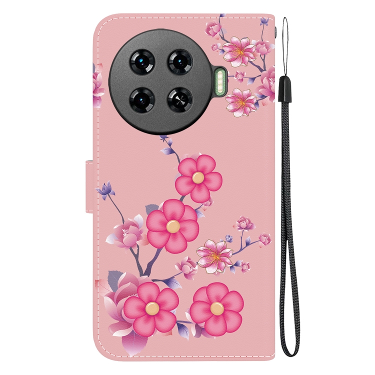 - 1x Estuche de Cuero para Tecno Spark 20 Pro+ 4G con Dibujo Coloreado y Textura de Cristal (Flores de Cerezo)