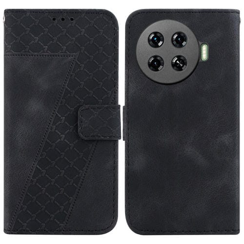 Funda de Cuero para Tecno Spark 20 Pro + 4G con Relieve Forma de 7 (Negro)