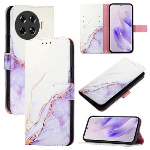Funda de Cuero con Tapa para Tecno Spark 20 Pro Pt003 con Patrón de Mármol (Blanco y Morado)