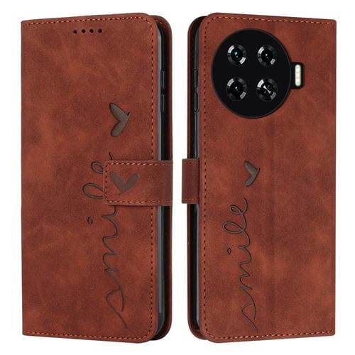 Funda para Tecno Spark 20 Pro Skin Feel Heart de Cuero en Relieve con Cordón Largo (Marrón)