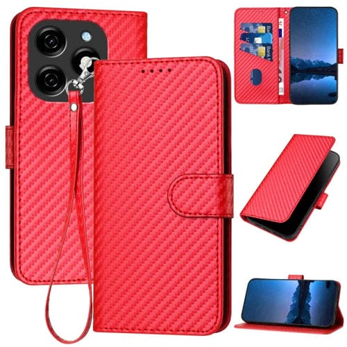 Funda de Cuero para Tecno Spark 20 Yx0070 con Hebilla de Fibra de Carbono y Cordón (Rojo)