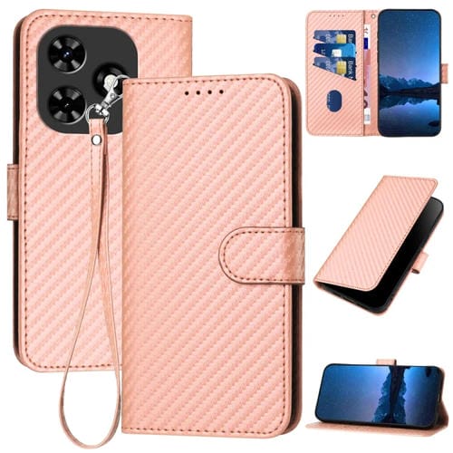 Funda de Cuero para Tecno Spark Go 2024 Yx0070 con Hebilla de Fibra de Carbono y Cordón (Rosa)