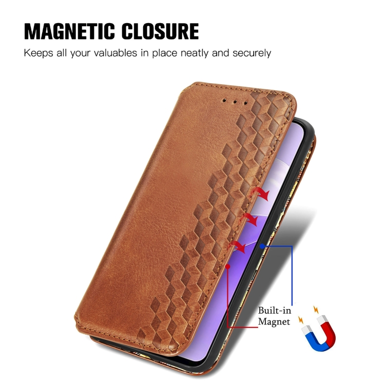 Funda para Ulefone Note 15 de Cuero Magnético Prensado con Rejilla Cúbica (Marrón)