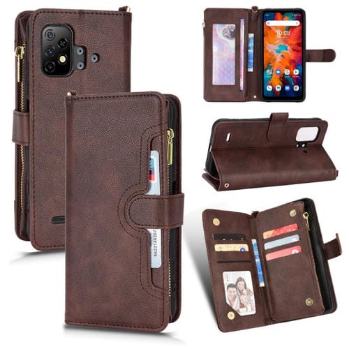 Funda para Umidigi Bison X10 con Textura Litchi de Cuero y Cremallera (Marrón)