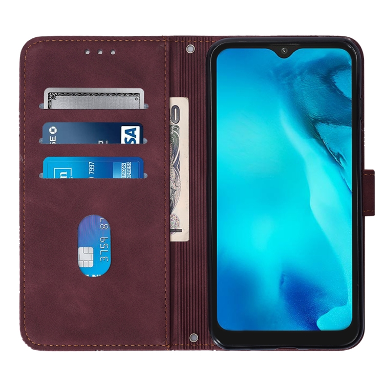 Funda Cuero con Tapa 3D para Umidigi C1 Crossbody (Rojo Vino)