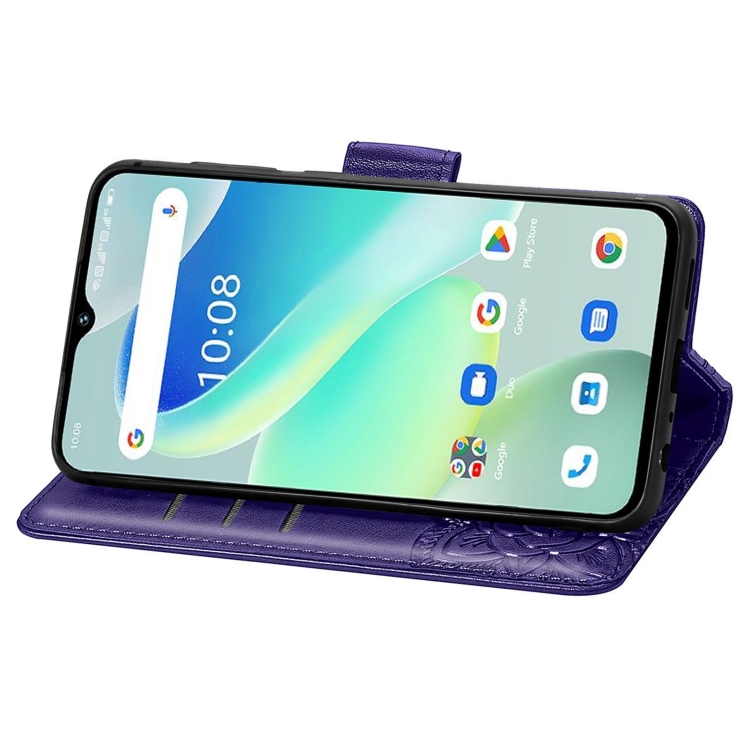 Funda de Cuero para Umidigi G5 Butterfly Love Flower en Relieve (Púrpura Oscuro)