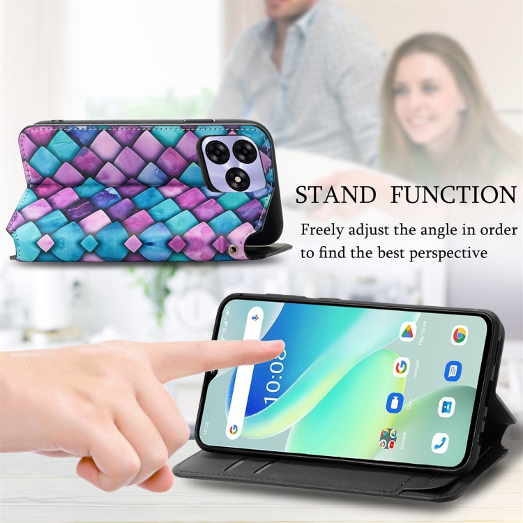 Funda de Cuero Magnética para Umidigi G5 Caseneo (Escamas Moradas)