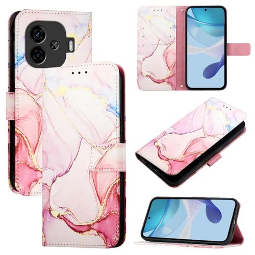 Para Vivo Iqoo Z9 / Iqoo Z9 Turbo Pt003 Funda de Teléfono de Cuero con Tapa con Patrón de Mármol (Oro Rosa)