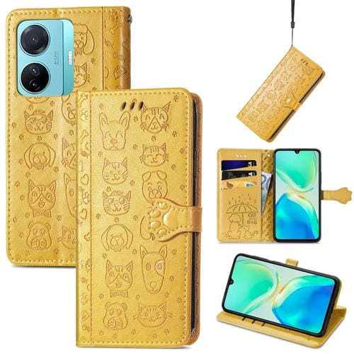 Para Vivo S15E Cat And Dog Funda de Cuero para Teléfono En Relieve (Amarillo)