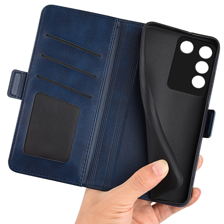 Para Vivo S16 / S16 Pro Estuche para Teléfono de Cuero con Hebilla Magnética de Doble Cara (Azul Oscuro)
