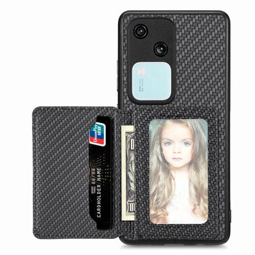 Para Vivo S18 Funda para Teléfono con Bolsa para Tarjeta Magnética de Fibra de Carbono (Negro)