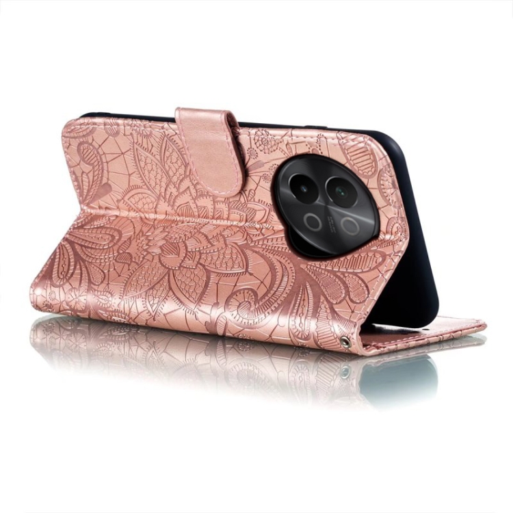 Para Vivo S18E Funda para Teléfono de Cuero con Tapa y Estampado de Flores de Encaje (Oro Rosa)