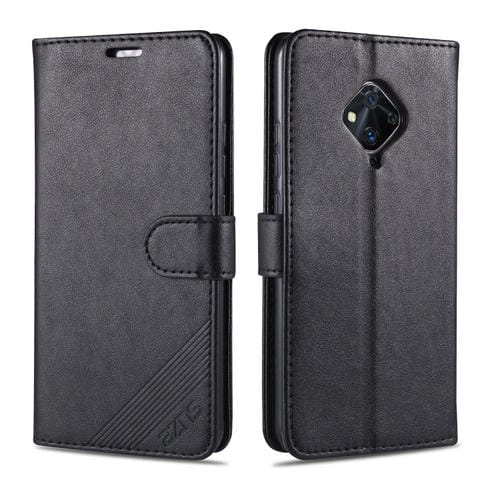 Para Vivo S5 Azns Funda de Cuero con Tapa Horizontal con Textura de Piel de Oveja con Soporte, Ranuras para Tarjetas y Billetera (Negro)