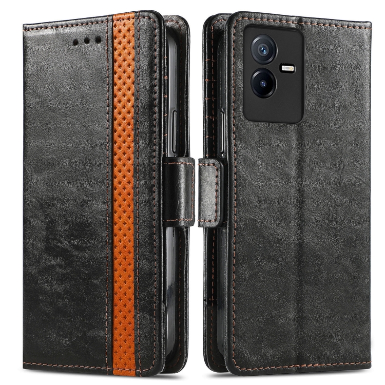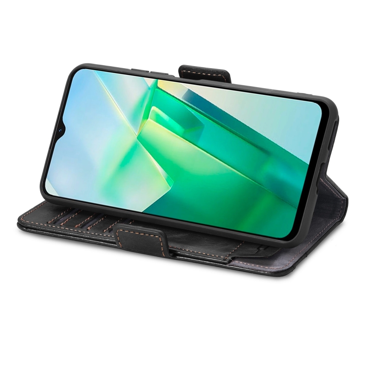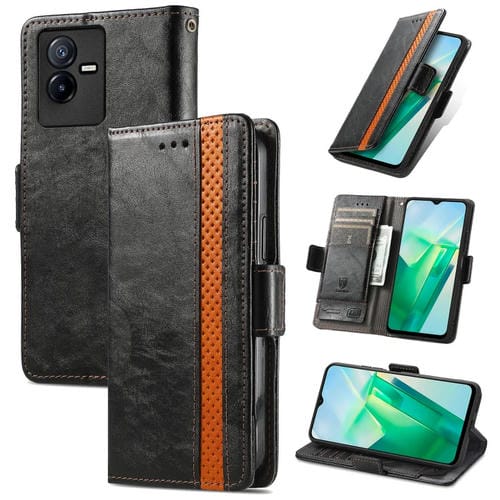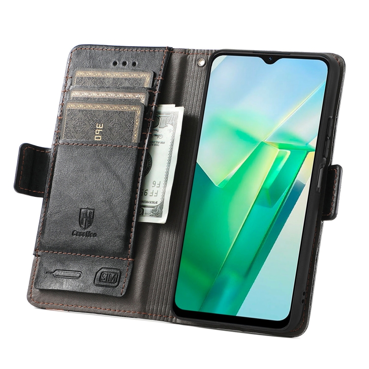 Para Vivo T2X 5G Caseneo Splicing Dual Magnetic Buckle Leather Phone Case (Negro)
