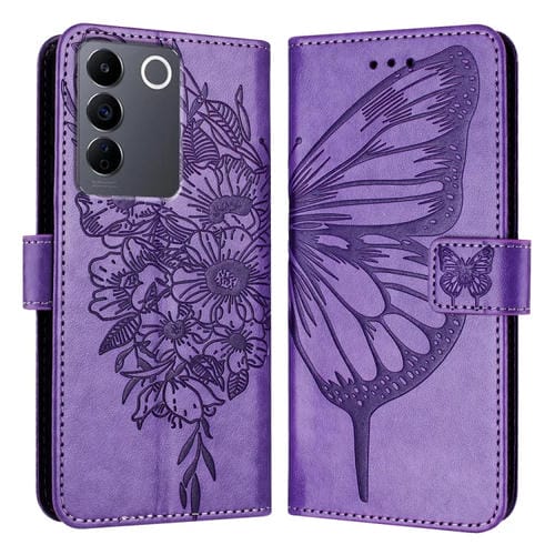 Para Vivo V27 5G / V27 Pro 5G Funda para Teléfono de Cuero con Mariposa En Relieve Global (Púrpura Claro)