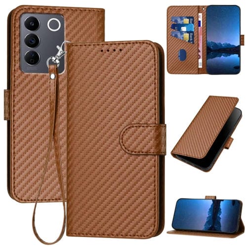 Para Vivo V27E 4G Global / T2 4G Global Yx0070 Funda de Cuero para Teléfono con Hebilla de Fibra de Carbono y Cordón (Café)