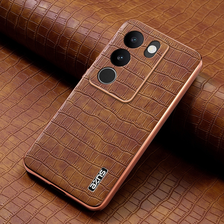 Para Vivo V29 / V29 Pro Azns Estuche para Teléfono de Cobertura Total con Textura de Cocodrilo con Marco Galvanizado (Marrón)