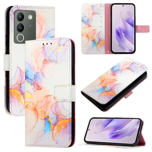 Para Vivo V29E 5G Global / Y200 5G Global Pt003 Funda de Cuero con Tapa con Patrón de Mármol (Blanco Mármol)